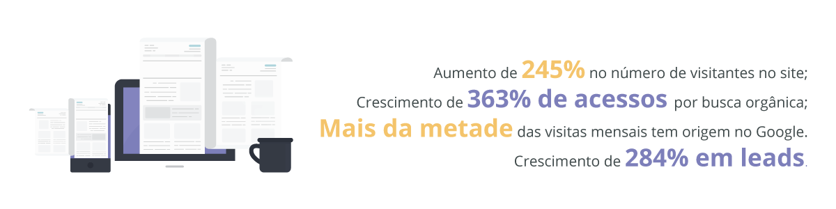 Nos últimos seis meses, a equipe Seu Cardio – Cirurgia Cardiovascular aumentou em 245% o número de visitantes em seu site, sendo a metade das visitas mensais com origem no Google, e em 284% o número de inscritos na sua base de relacionamento.