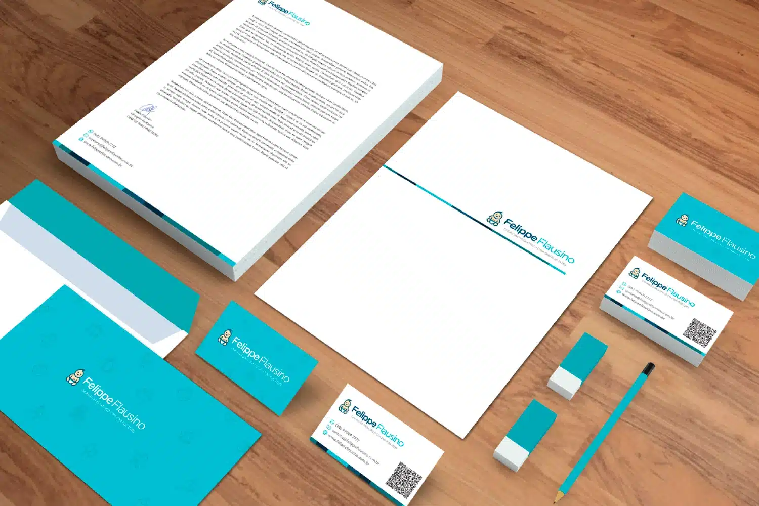 • Produção de itens de papelaria (receituário, pasta, bloco de notas, cartão de visita, entre outros)